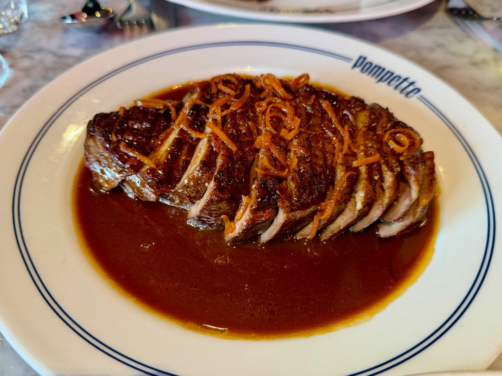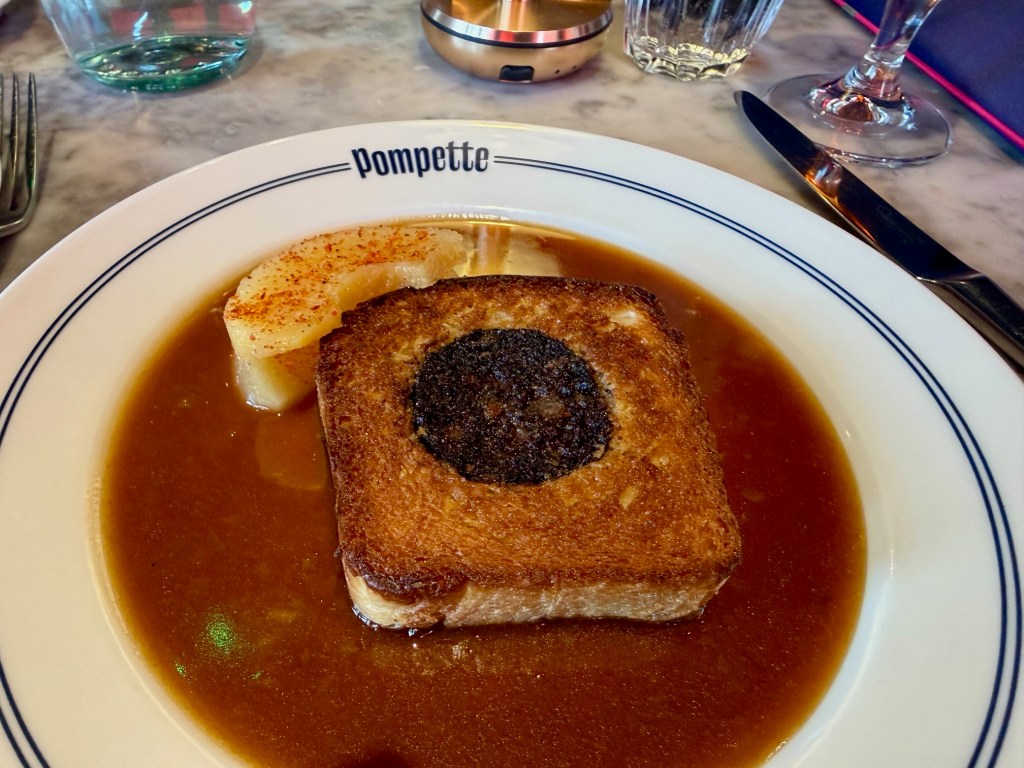 I have eaten at Pompette a couple of times, but not for something like five years. I went the winter after it opened with a group of my friends known as the Guild Of Ponces and thoroughly enjoyed it (to read about a meal we had at a less convincing French restaurant, click here) and then I took Zoë there the summer after the pandemic. We had a lunch there that was good but flawed, and at the time I decided not to write it up: after all, it was 2021 and it didn’t feel like the right time to say “here’s a hit and miss meal only a train and bus ride away”. Who would have cared?