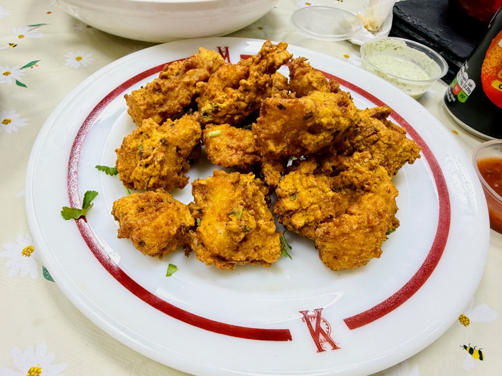 That would have been enough food, but there were a couple of other things I really wanted to try. One, the masala fish pakora, was possibly my single favourite dish of the evening, a big pile of irregular golden nuggets of fish, the coating all gram flour and herbs and the inside pearlescent, cooked no more and no less than each piece demanded. This deft touch reminded me of Kungfu Kitchen’s deep fried fish in spicy hot pot, a spiritual sibling even if it originated thousands of miles away in Chengdu.