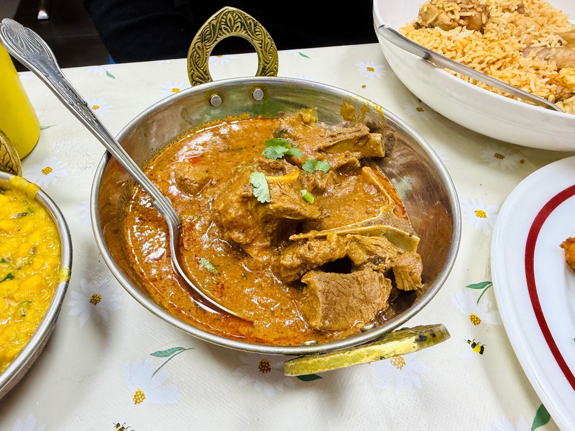By this point the staff had just given us a big squirty plastic bottle filled with raita, the kind kebab shops use to anoint your late night purchases, so we didn’t have to exercise restraint. I think they’d worked out that, on that evening at least, restraint simply wasn’t our bag.