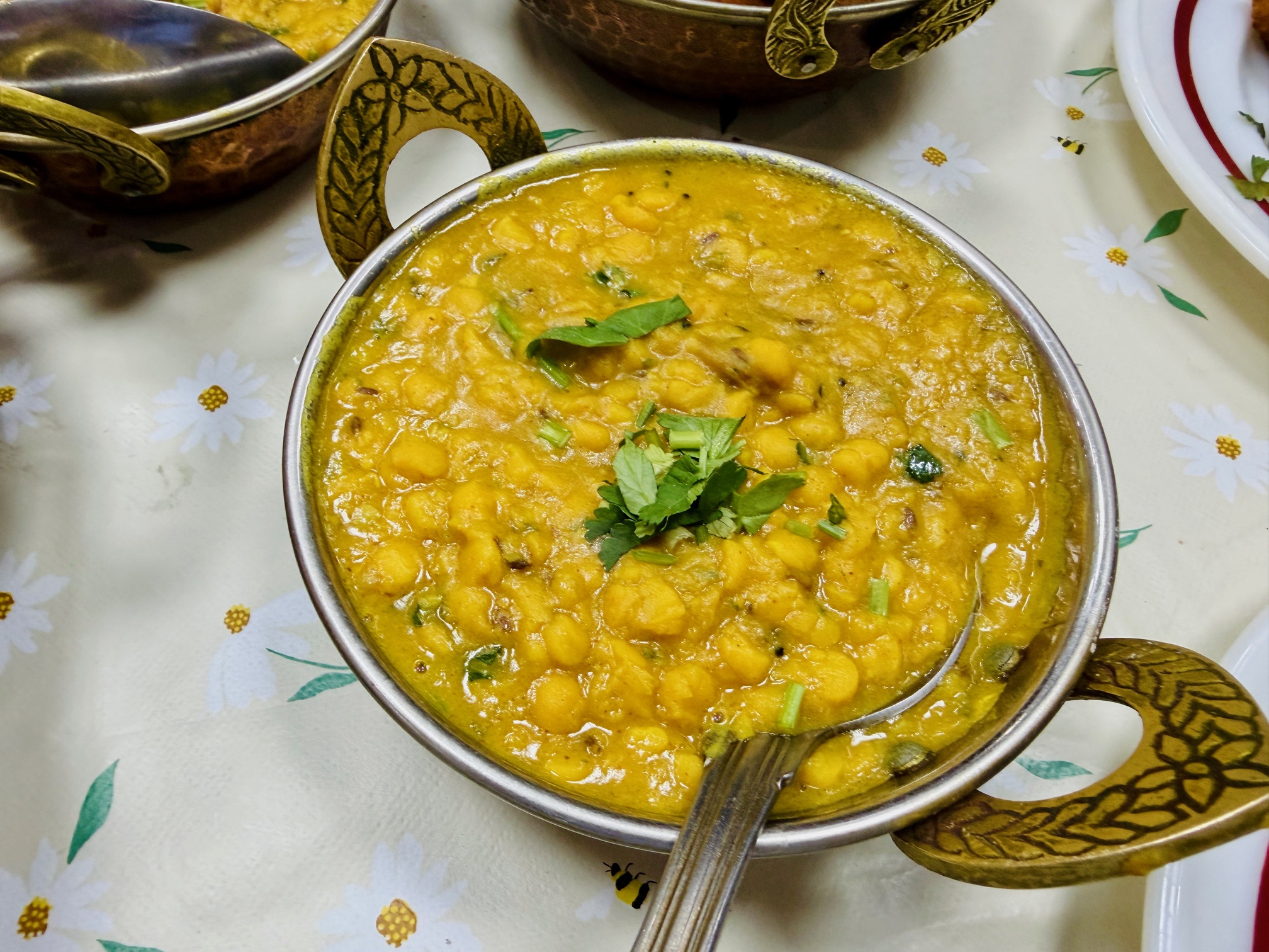 And then, because in my experience some truly hospitable cultures and people feel bad about things like being tipped and immediately try to give you something in return, he insisted that we stop for chai and, about ten minutes later, brought us two beautiful sweetened cups of the stuff. Because that wasn’t enough, we also got a little bowl of dates stuffed with almonds. It was simply lovely: my friend and I sat there sipping our chai as our cups sat on that lino tablecloth, we ate our dates, we watched the traffic hum past, heading into town, and we both reflected on just how good a meal it had been.