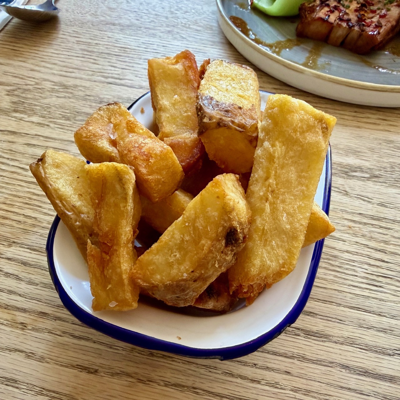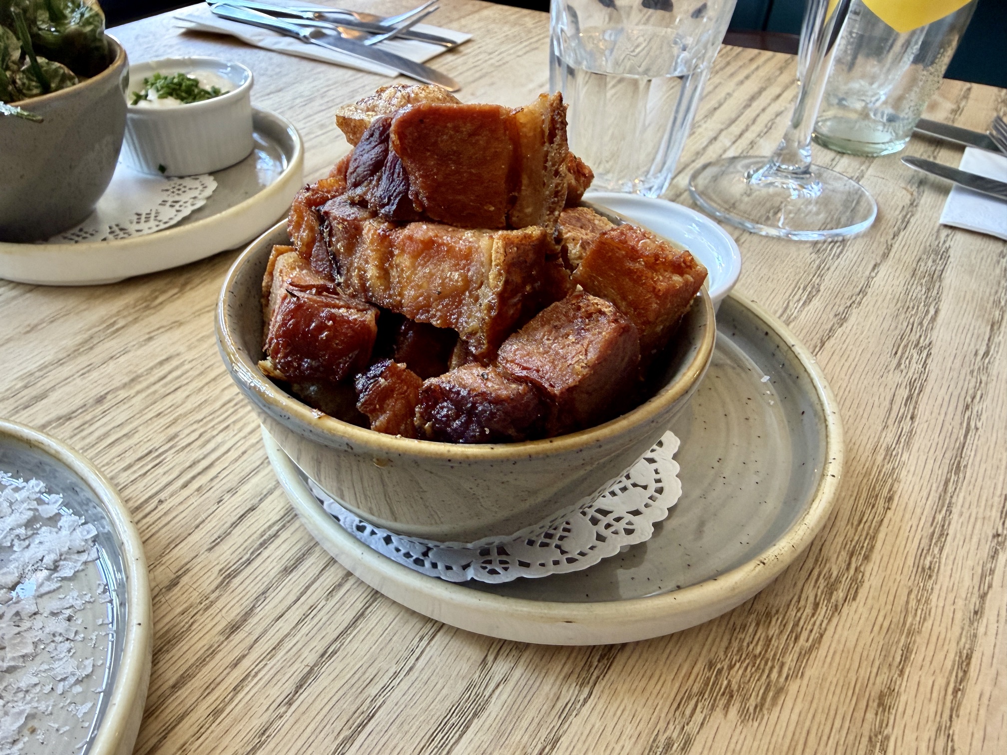 But if you do like padron peppers, and plenty of people do, these were as good an example of the genre as you’ll find. I wasn’t sure about the wisdom of serving them with aioli, mainly because I’ve never seen that done before, but the padron pepper expert among us was very happy with them. Also £8.50 for these, which I found a tad strange: the crispy pork felt like a much better return on investment.