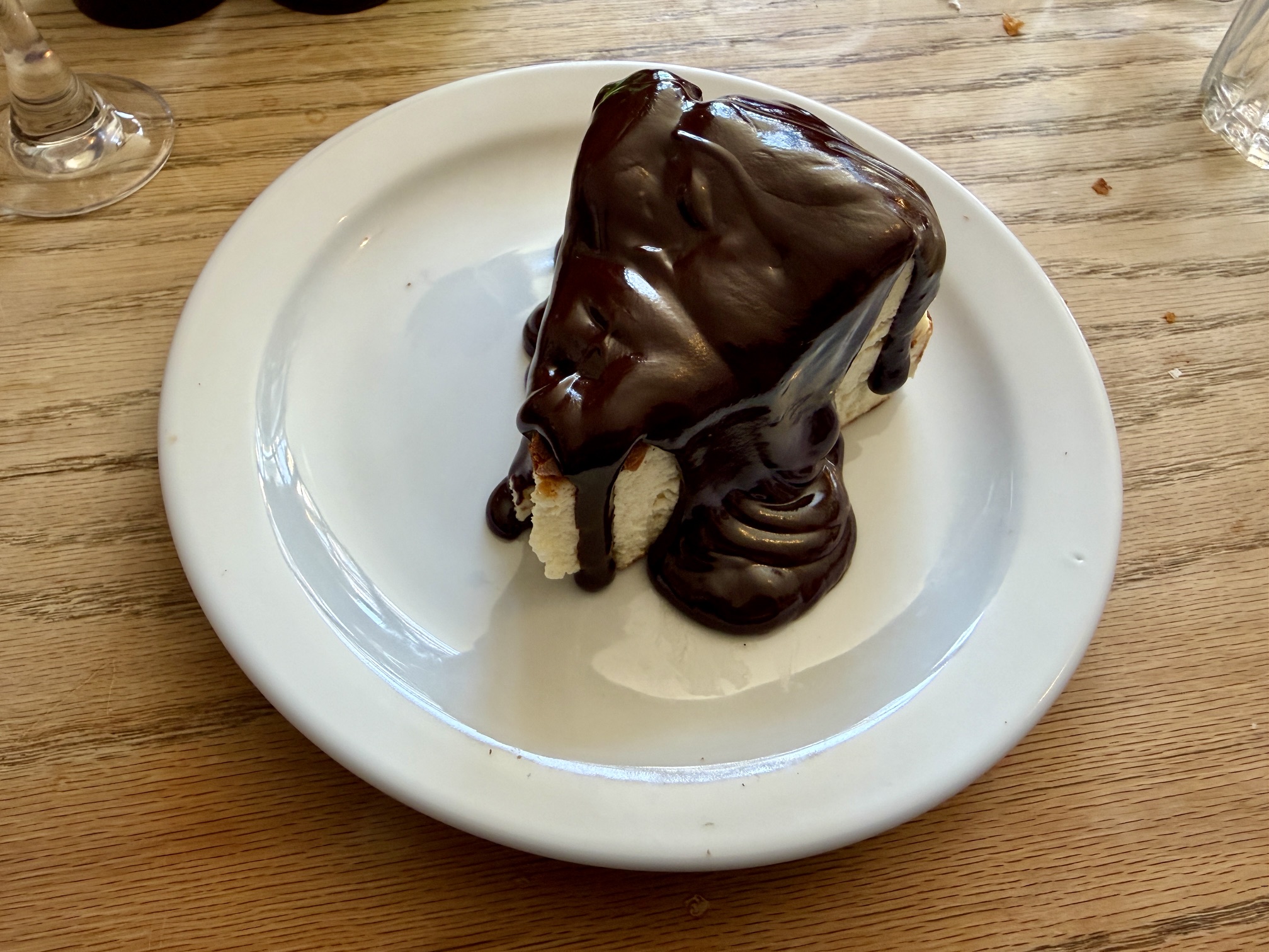 The rest of us had the Basque cheesecake, unusually with chocolate sauce rather than fruit. The slightly warm, exceptionally rich dark chocolate sauce made this dessert, but without it it would have been rather like Snoop Dogg, i.e. slightly too baked for my liking. I like a Basque cheesecake to retain a little wobble, this was a very solid affair. That might have been a conscious choice given the accompaniment, but I wasn’t sure.