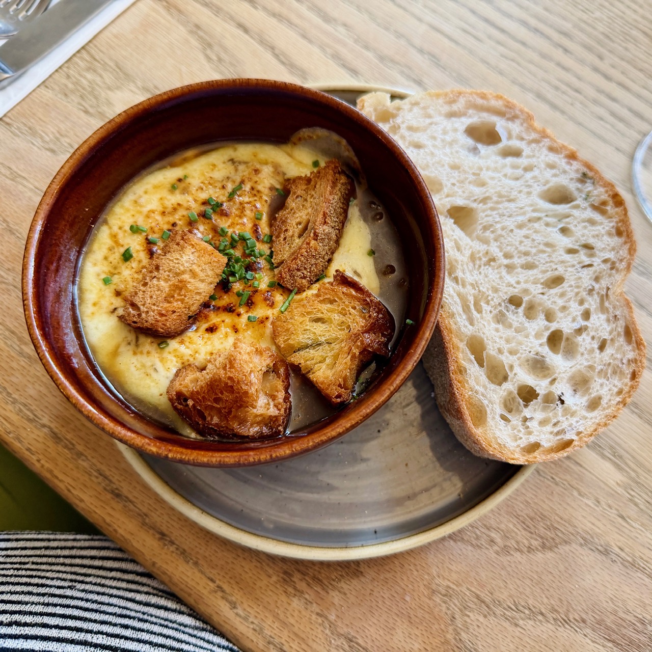 And in case that wasn’t enough for you, there was also a thick wodge of excellent bread speckled with caraway seeds: not necessarily that French, but a very welcome interloper. “It was maybe ever so slightly too sweet from the onions” Zoë told me later, “but that’s niggling. Besides, the cheese more than made up for it.”