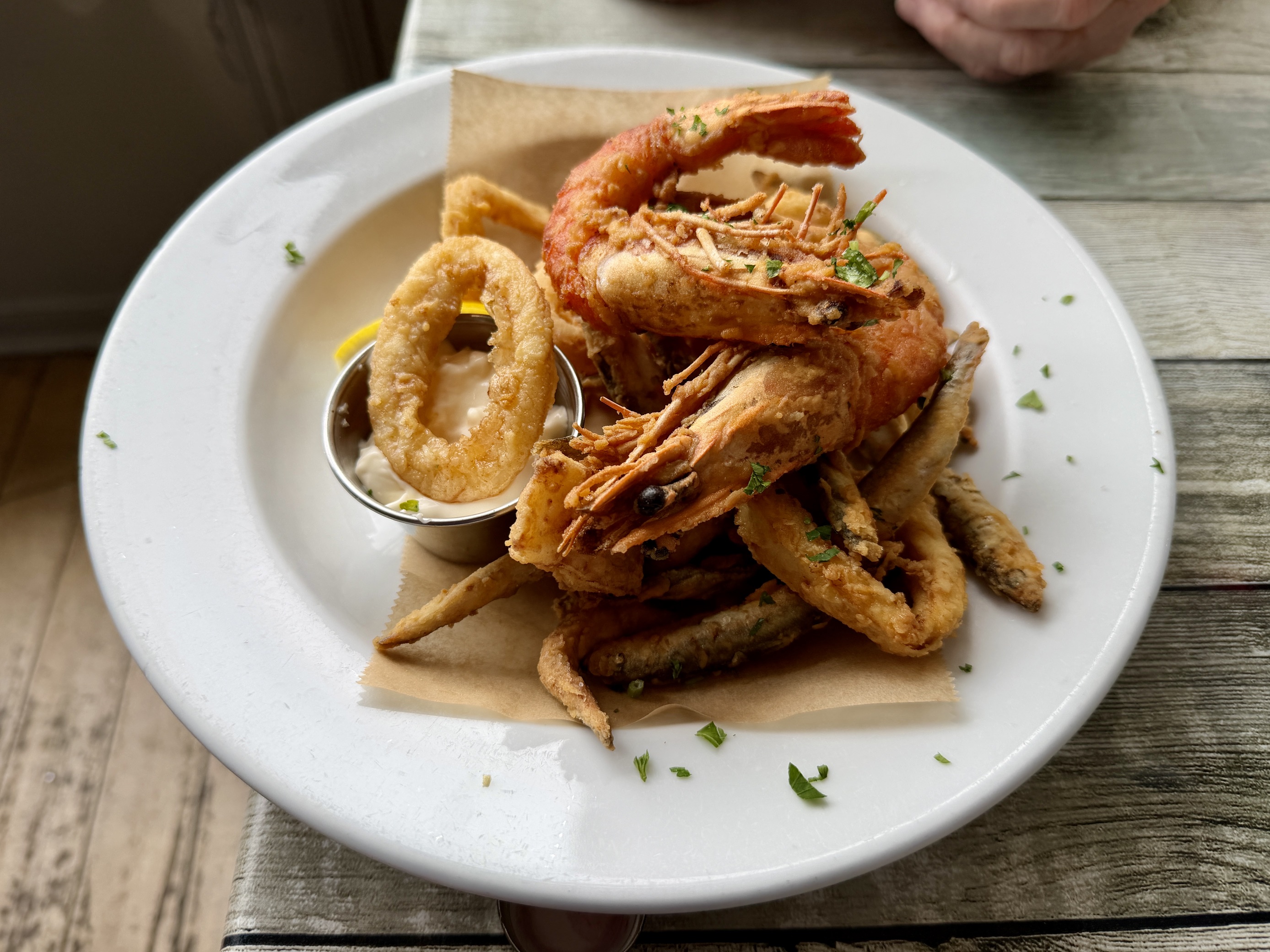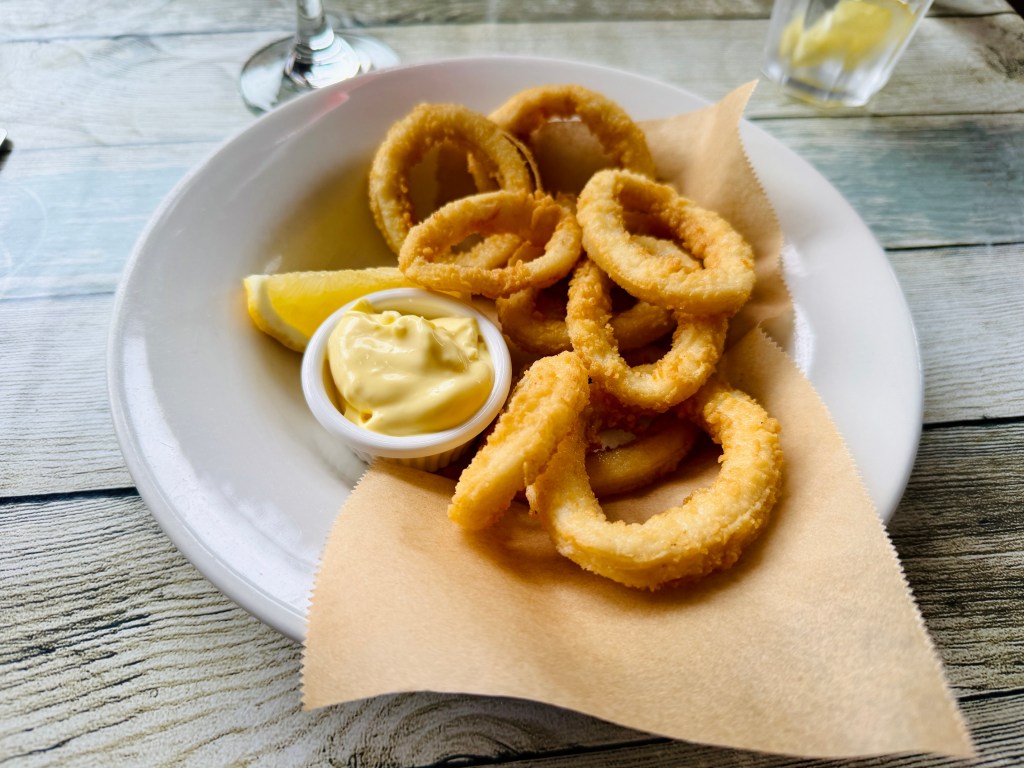 Take my calamari, for instance. They even looked pedestrian, and I was half expecting to wade my way through a bowl of breaded rubber bands. So imagine my surprise when I found they were delicious, lightly dusted with a coating that adhered, had crispness, and that they were tender without the slightest twang of elastic.