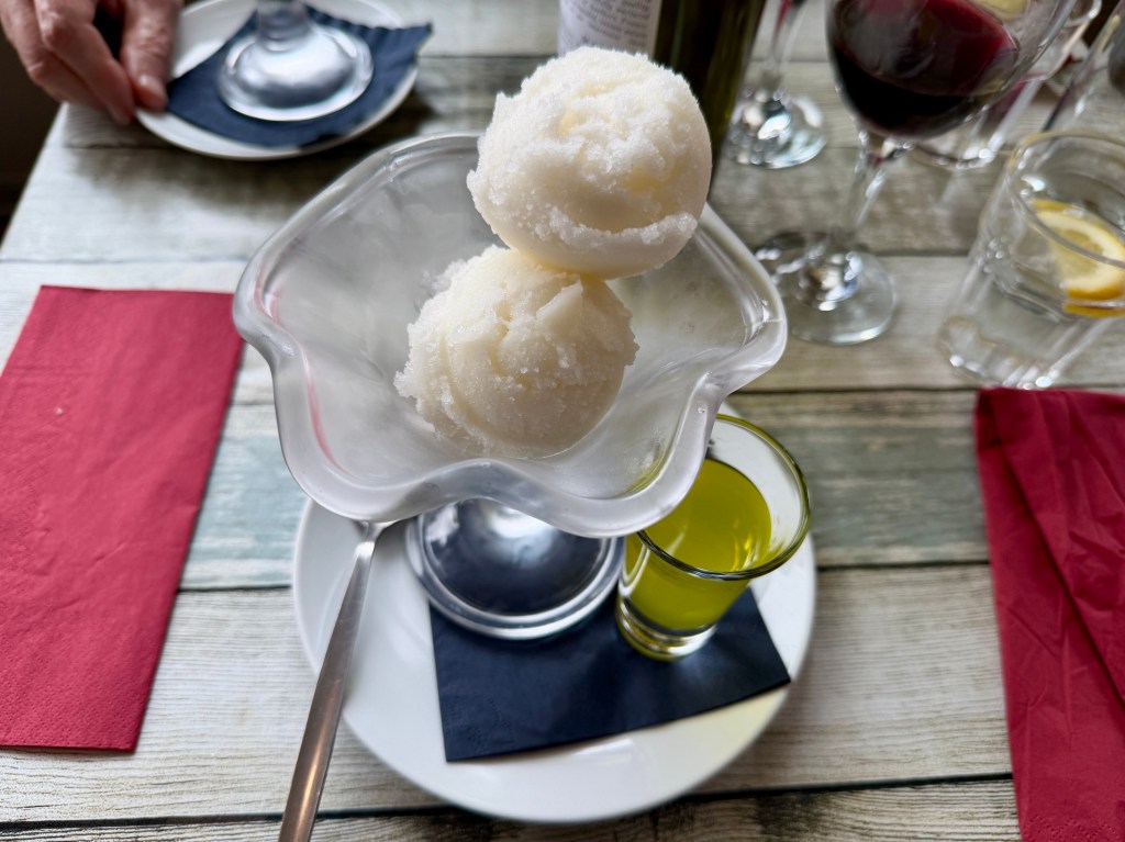 I picked from the specials, most of which were dessert with extra booze, be it a pastel de nata with a glass of port or an affogato with Frangelico on the side. I genuinely loved my two spheres of lemon sorbet with limoncello, and thoroughly enjoyed anointing the former with the latter. It felt like the kind of dessert you don’t see on menus much these days, a resolutely old school, tried and tested combo.
