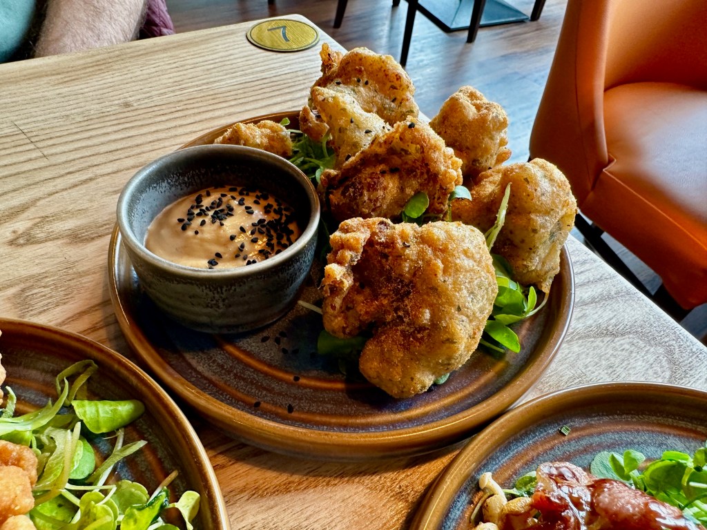 What we got, in fairness, was not salt and pepper squid as I understand it. It didn’t have that distinctive coating, the way the same order at, say, Kungfu Kitchen would have done. But we got something even better. Six pieces of squid, beautifully scored, in a crispy salt and pepper-free coating, fried and brought to our table fresh as you like with some charred lemon and a nicely tangy srirachi mayo.