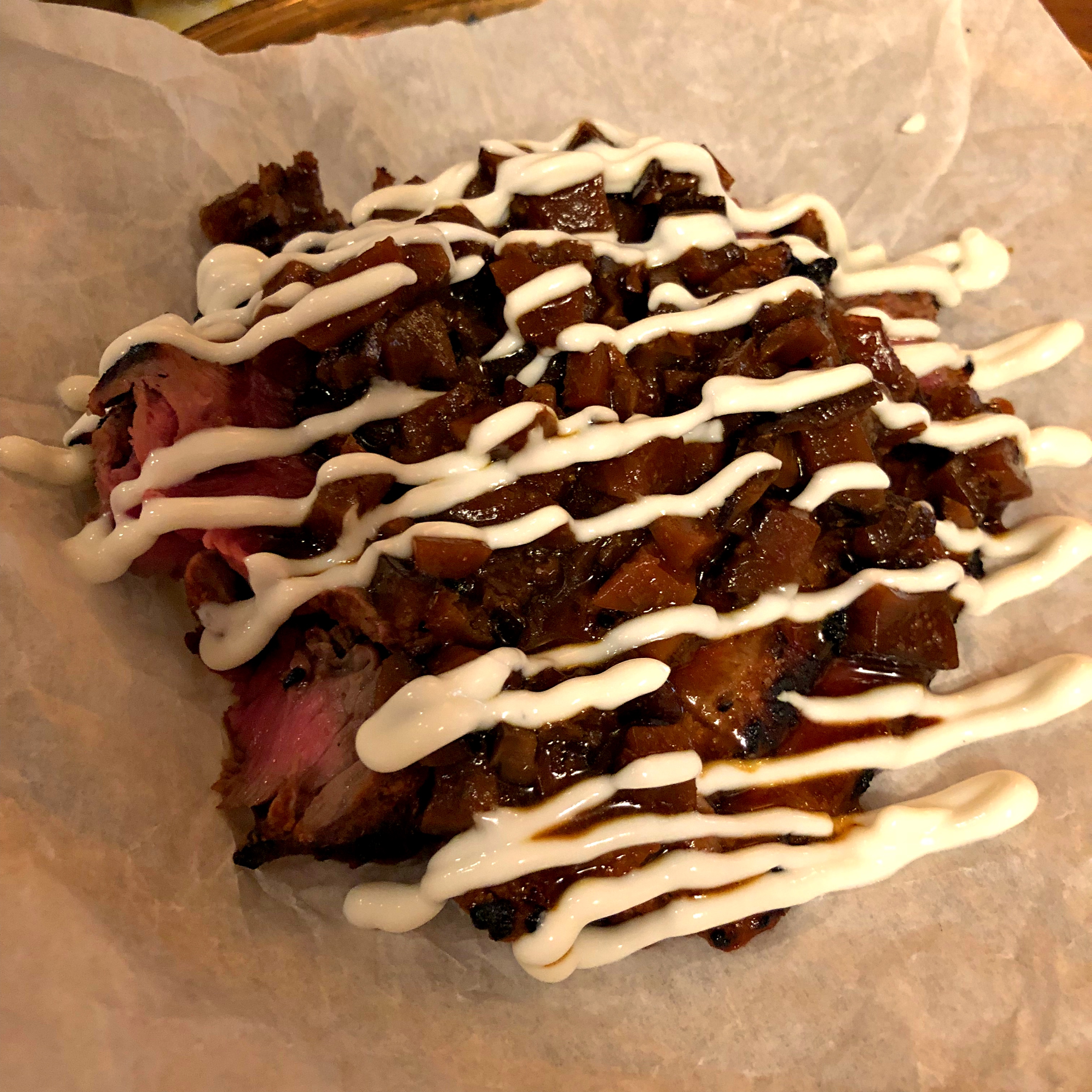 Eating the banana buns in this context was interesting, like seeing an old friend in a new place. On their own, that time back in August, I was struck by the interplay between the sweet and the savoury – sometimes it feels like only European cuisine so rigidly separates the two – the banana on one hand and the speckling of cumin seeds on the other. All those things were still present and correct, the whole thing with a fantastic glazed exterior and a doughy inside, hot enough that you needed asbestos fingers and with just enough oiliness to leave you requiring a napkin.
