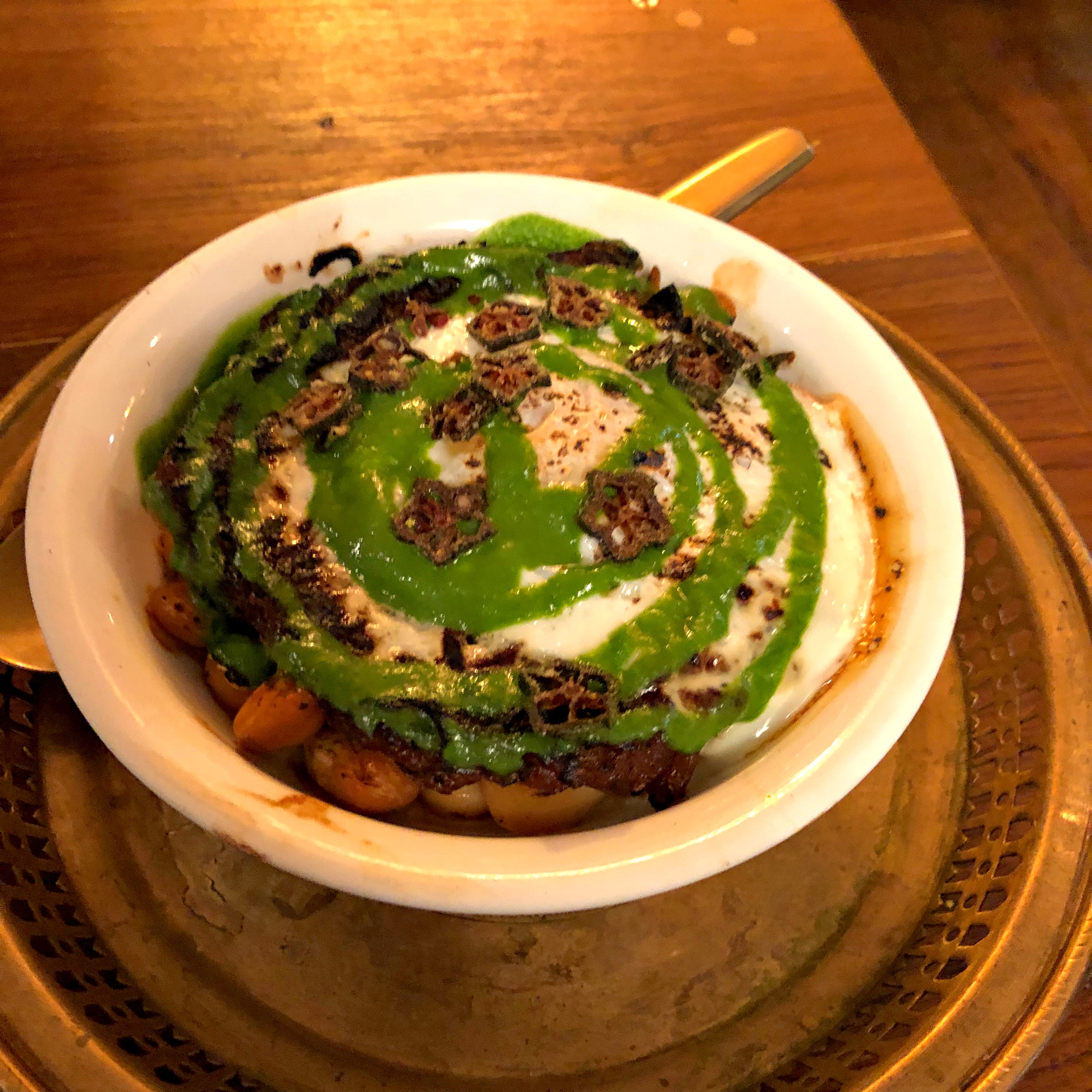 The second dish also came out in two waves, about five minutes apart, and for me was even better. From the moment I saw goli baje, fritters, on the menu I knew I would order them when I visited, but they exceeded my high expectations. The epitome of cooked then and there, they were irregular, knobbly, piping hot spheres of dough – golden on the outside, again too hot to touch and completely addictive. They were like doughnuts, or like doughnuts would be if they were savoury, just airy enough and shot through with little chunks of green chili. Hot, in other words, with a brilliant level of spice which built and built.