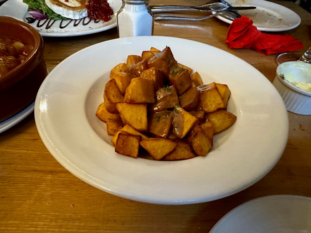 Because you could have tortilla in dozens of places, in Spain and in this country, and not approach the brilliance of this. Every forkful but the last was wonderful, and the last was wonderful yet heartbreaking. But I knew that at least not sharing it meant that last forkful took longer to arrive. It was so sweet, so exquisite that I thought I tasted things in it – maybe nutmeg, maybe cinnamon – that weren’t there.