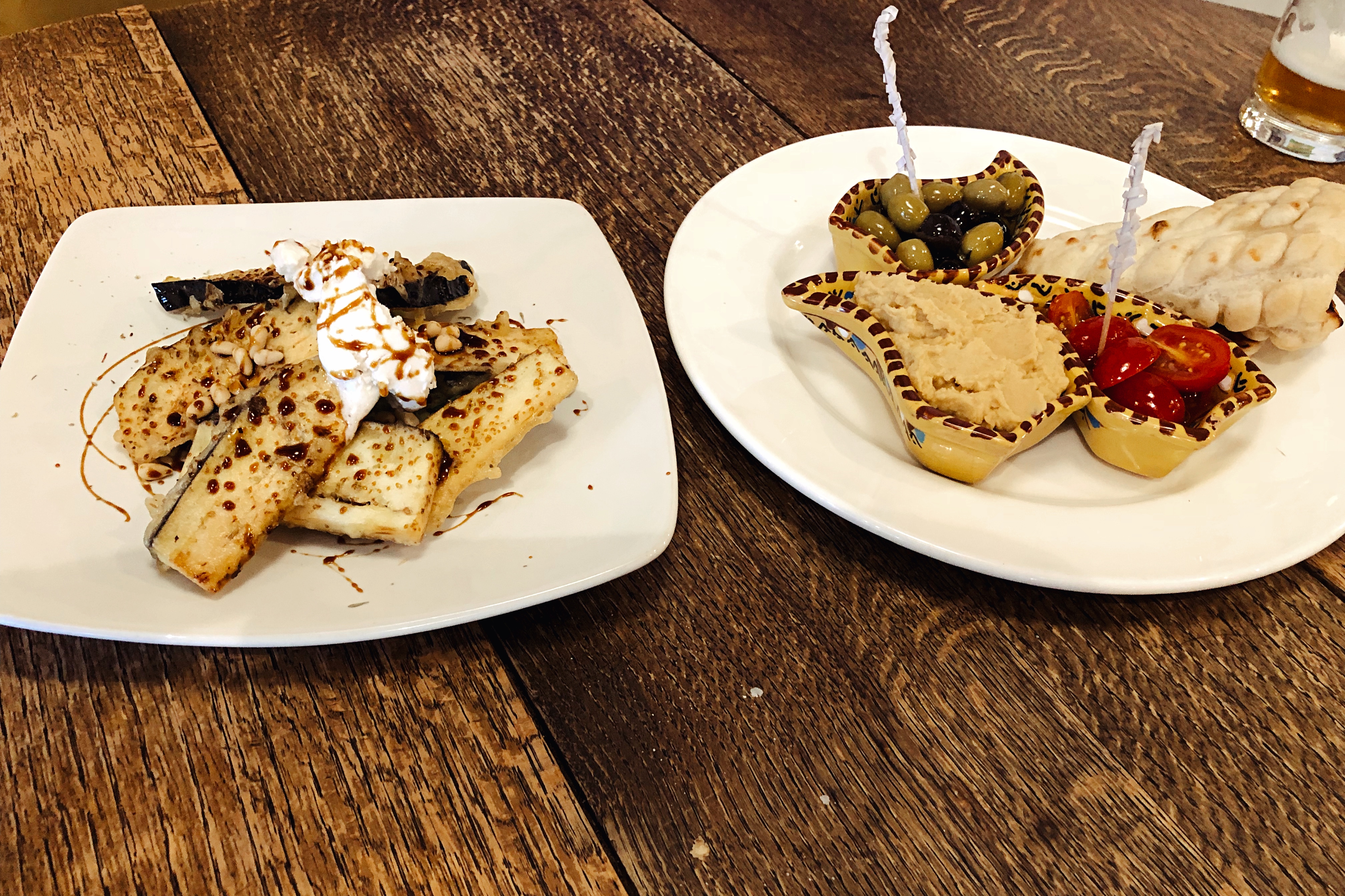The houmous, though, was worse than anything you could get in a supermarket – I’ve no doubt they made it themselves, but it had no lightness, no evidence of olive oil or garlic or tahini. Calling it a dip was optimistic because it didn’t have the texture for dipping: you’d have had more luck using it to cement a wall. We did our best to scoop it on to the heavy, unremarkable flatbread.